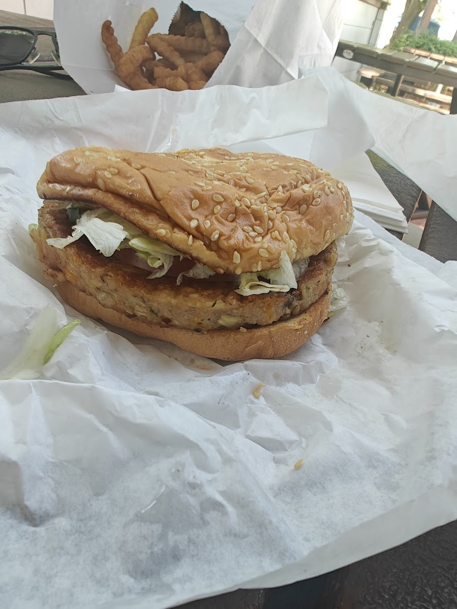 Great place to stop while traveling. Food was delicious, service was great, and shaded tables to sit. I got the veggie burger and family fries